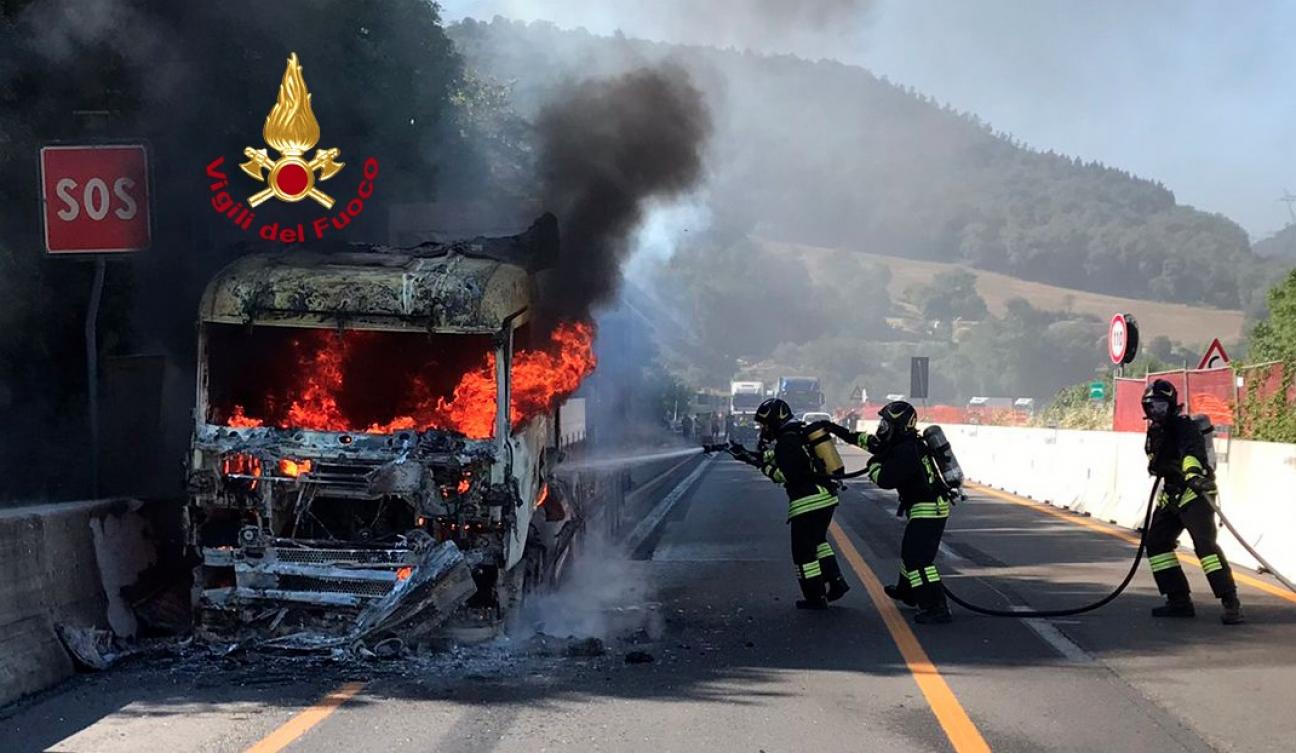I Vigili del fuoco del comando di Firenze, distaccamento di Fi-ovest e di Barberino del Mugello, sono intervenuti alle ore 9:25 nel comune di Calenzano nel tratto autostradale A1 al km 267 direzione Nord tra Calenzano e Barberino del Mugello, per un incendio di un mezzo pesante adibito al trasporto di mezzi agricoli.