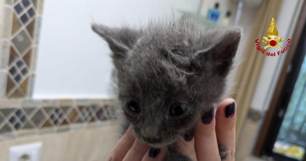 I Vigili del fuoco salvano un gatto rimasto incastrato in un'intercapedine