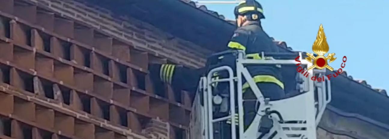 Una squadra di Vigili del fuoco della sede centrale è intervenuta a Capannori nel tardo pomeriggio del 2 luglio per salvare un gatto di pochi mesi che era rimasto incastrato tra le mezzane di una mandolata sulla facciata di un'abitazione.