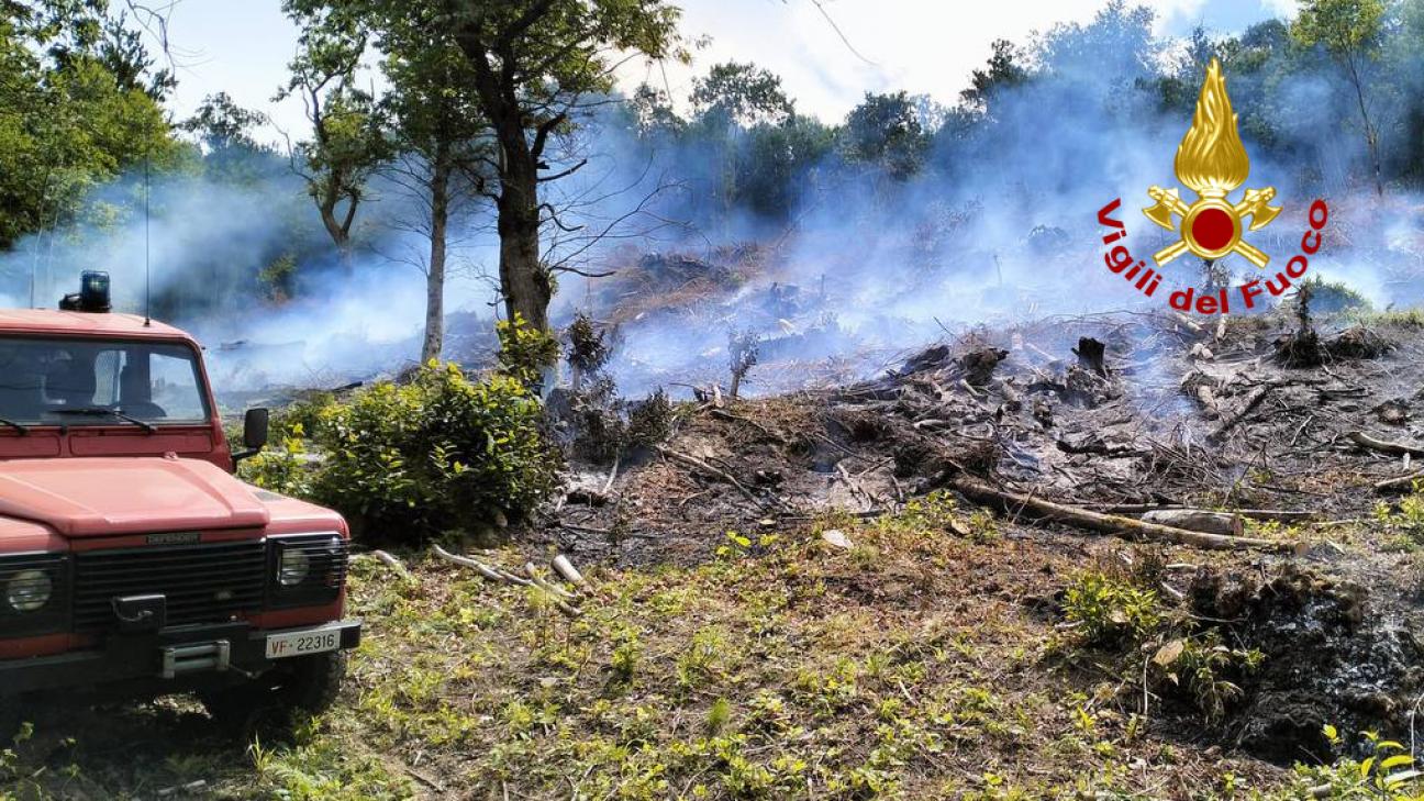 Bosco in fiamme in località Forca: Vigili del fuoco sul posto