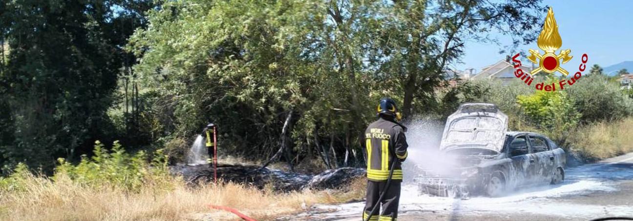 Poco dopo le 11 i Vigili del fuoco di Ascoli ed un’autobotte giunta da San Benedetto sono intervenuti sulla provinciale Valtesino per l’incendio di un’auto, che si trovava sul ciglio della strada. Con l’ausilio di liquido schiumogeno si è provveduto ad estinguere le fiamme che si erano estese anche a delle sterpaglie a margine della sede stradale.