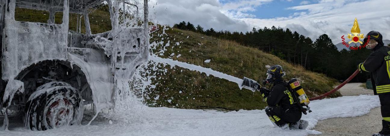 I Vigili del fuoco sono intervenuti questa mattina a Frontignano, nei pressi della seggiovia Belvedere, per l’incendio di un camion. Le fiamme hanno distrutto completamente la parte anteriore del mezzo pesante. La squadra di Visso ha spento l’incendio utilizzando liquido schiumogeno e messo in sicurezza l’automezzo. Nessuna persona coinvolta.
