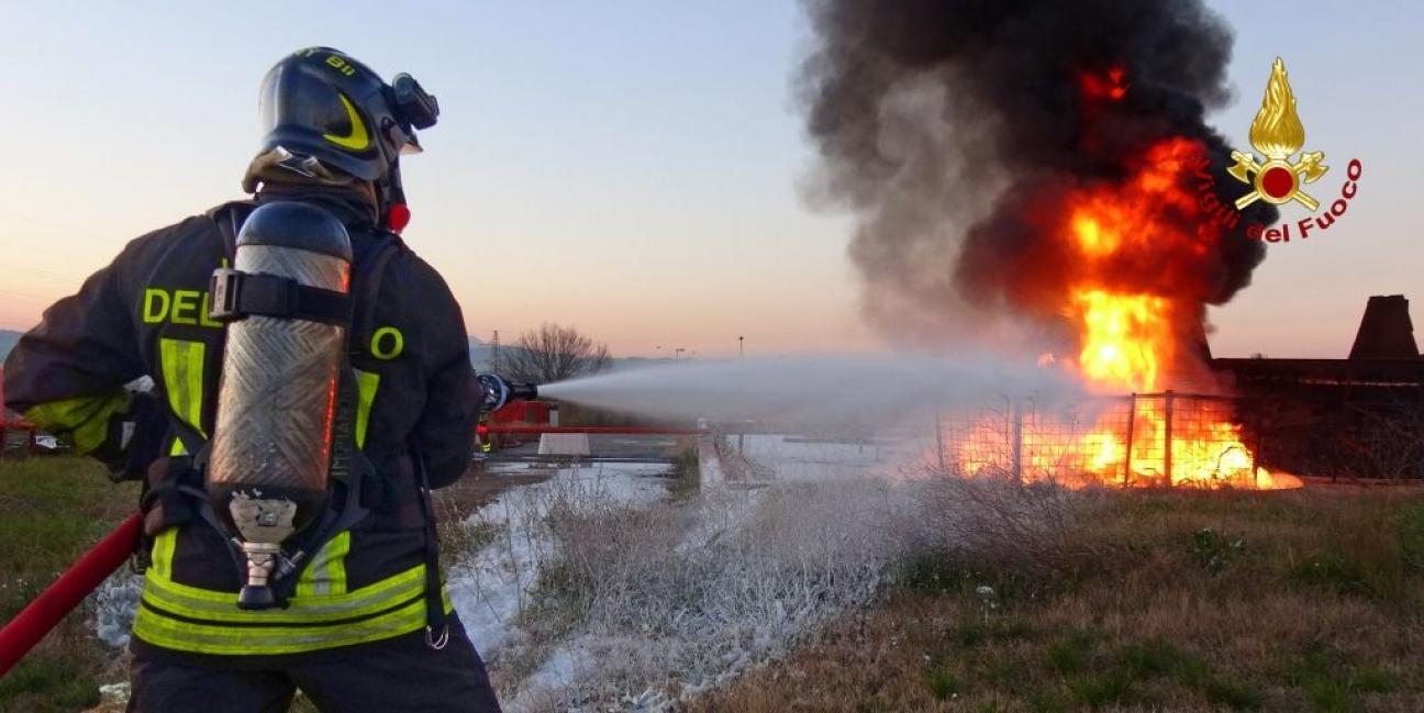 Venerdì 10 gennaio - Conclusione dei lavori, oggi, presso la Scuola di Formazione Operativa di Montelibretti dell'esercitazione regionale sulle nuove tecniche di spegnimento. Alla presenza dei vertici della Direzione Centrale per l'Emergenza, della Direzione Regionale per il Lazio, e dei Comandanti Provinciali si è svolto un incontro con i discenti per fare il consueto debriefing, valutare il gradimento del pacchetto addestrativo, ascoltare le proposte migliorative sia per l'attività svolta che per i futuri possibili obiettivi. Tra le parole del Direttore Emergenza, Guido Parisi e del Direttore Lazio, Claudio De Angelis l'impegno per dotare i Comandi delle tipologie innovative degli agenti estinguenti (con particolare attenzione agli schiumogeni) e attrezzature testati in questi giorni e l'attenzione sempre più alta nei confronti della sicurezza e della salute degli operatori VVF obiettivo imprescindibile per il Corpo Nazionale. A tal proposito la mattinata si è conclusa con una lezione incentrata su temi come il rischio contaminazione, i DPI (Dispositivi di Protezione Individuale), l'igiene ed i corretti comportamenti da tenere al rientro nelle sedi di appartenenza dopo gli interventi più delicati, con l'illustrazione di studi provenienti da colleghi di tutto il mondo.