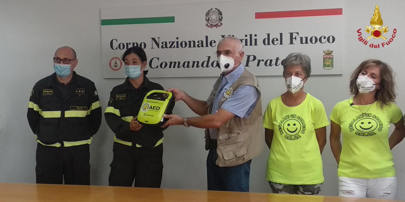 Il 15 settembre, con una semplice cerimonia svoltasi presso la sede centrale, il presidente della Onlus "Regalami un sorriso", Sig. Piero Giacomelli, ha donato ai Vigili del fuoco un defibrillatore automatico (DEA). L'utilissimo presidio medico, ricevuto dal comandante Francesca Conti, va ad aggiungersi a quelli già in dotazione al comando. L'associazione pratese è molto attiva sul territorio provinciale per la sensibilizzazione sull'utilizzo e la diffusione di questa particolare strumentazione salvavita. L'apparecchio donato al comando, il terzo da quando l'associazione ha iniziato questa attività, è il numero 154 di quelli forniti a enti e associazioni della zona e, ad oggi, sono undici le vite salvate dagli apparecchi donati dalla Onlus "Regalami un sorriso".